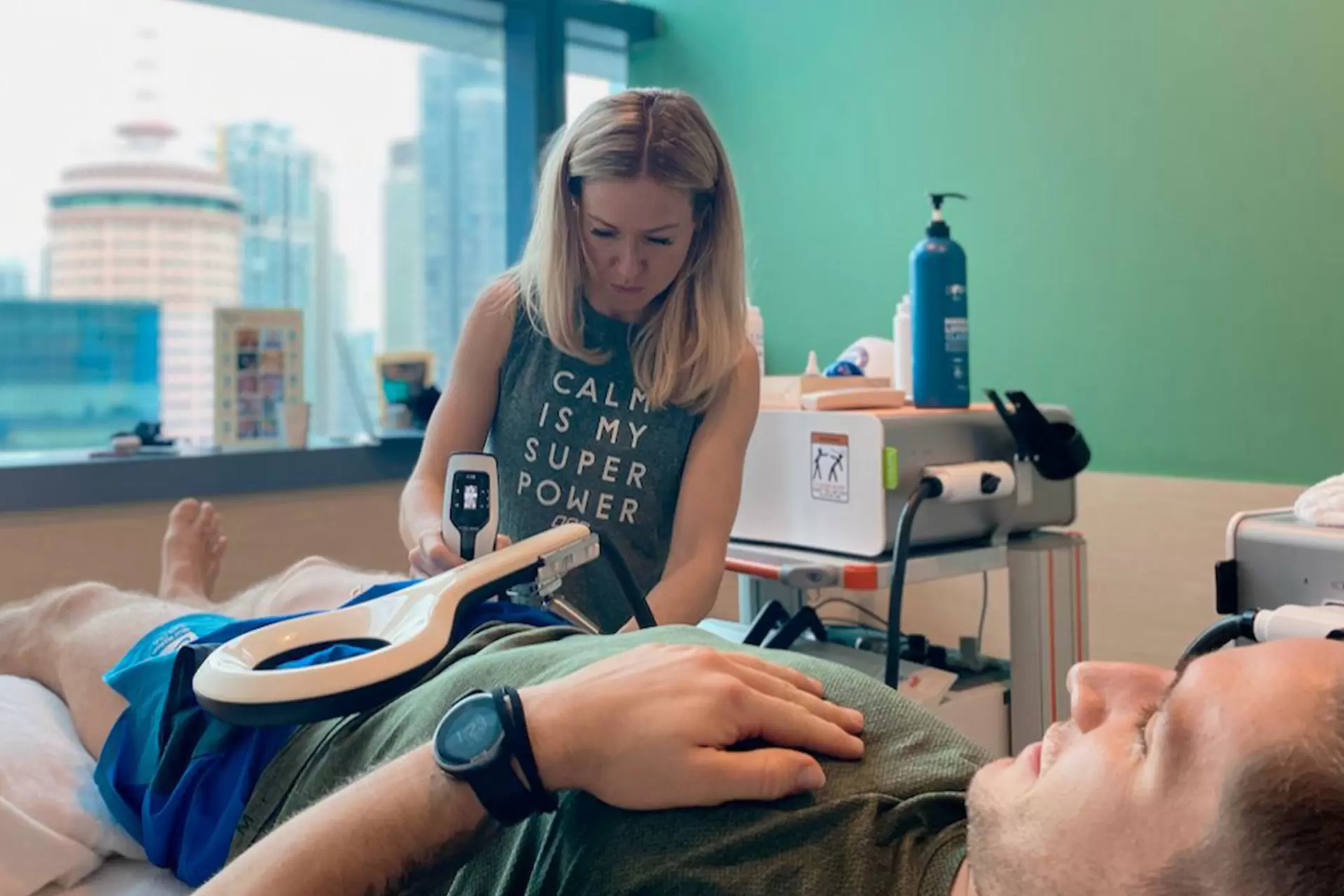 In Shockwave Therapy, your physiotherapist will apply precise radial shockwaves to afflicted areas, such as your hip, to help manage discomfort, reduce pain, and stimulate healing. The shockwaves also can make rehabilitative exercises easier by mitigating the pain.